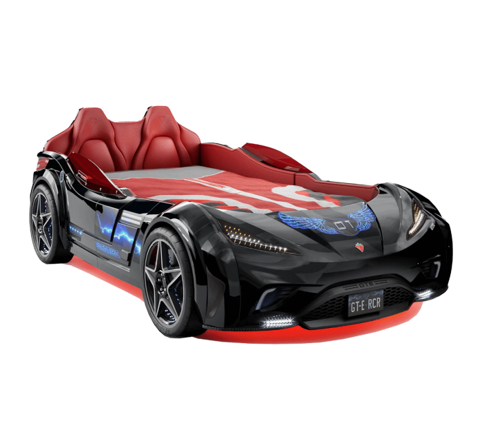 Das Cilek Autobett GTE in Schwarz bringt echten Rennspaß ins Kinderzimmer! Mit seiner modernen Rennwagen-Nachbildung und LED-Beleuchtung an Reifen, Unterboden und Scheinwerfern verwandelt es das Zimmer in eine aufregende Rennstrecke. Die enthaltene Fernbedienung steuert die stimmungsvolle Beleuchtung und verschiedene Autohupen-Sounds. Das Bett verfügt über ein Kopfteil in Form von zwei schwarzen Sportsitzen und ist aus hochwertigem MDF für das Gestell und robustem Polystyrol für den Korpus gefertigt. Mit einer Liegefläche von 100 x 190 cm und den Maßen 127 x 80 x 220 cm (B/H/T) bietet es sowohl Komfort als auch Spielspaß. Ideal für kleine Rennfahrer, die Komfort und Abenteuer lieben!
