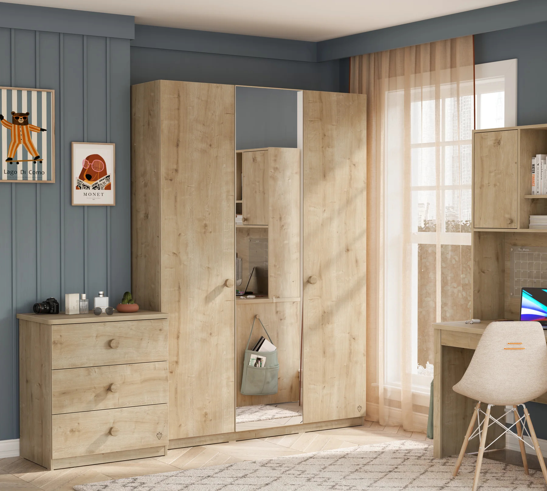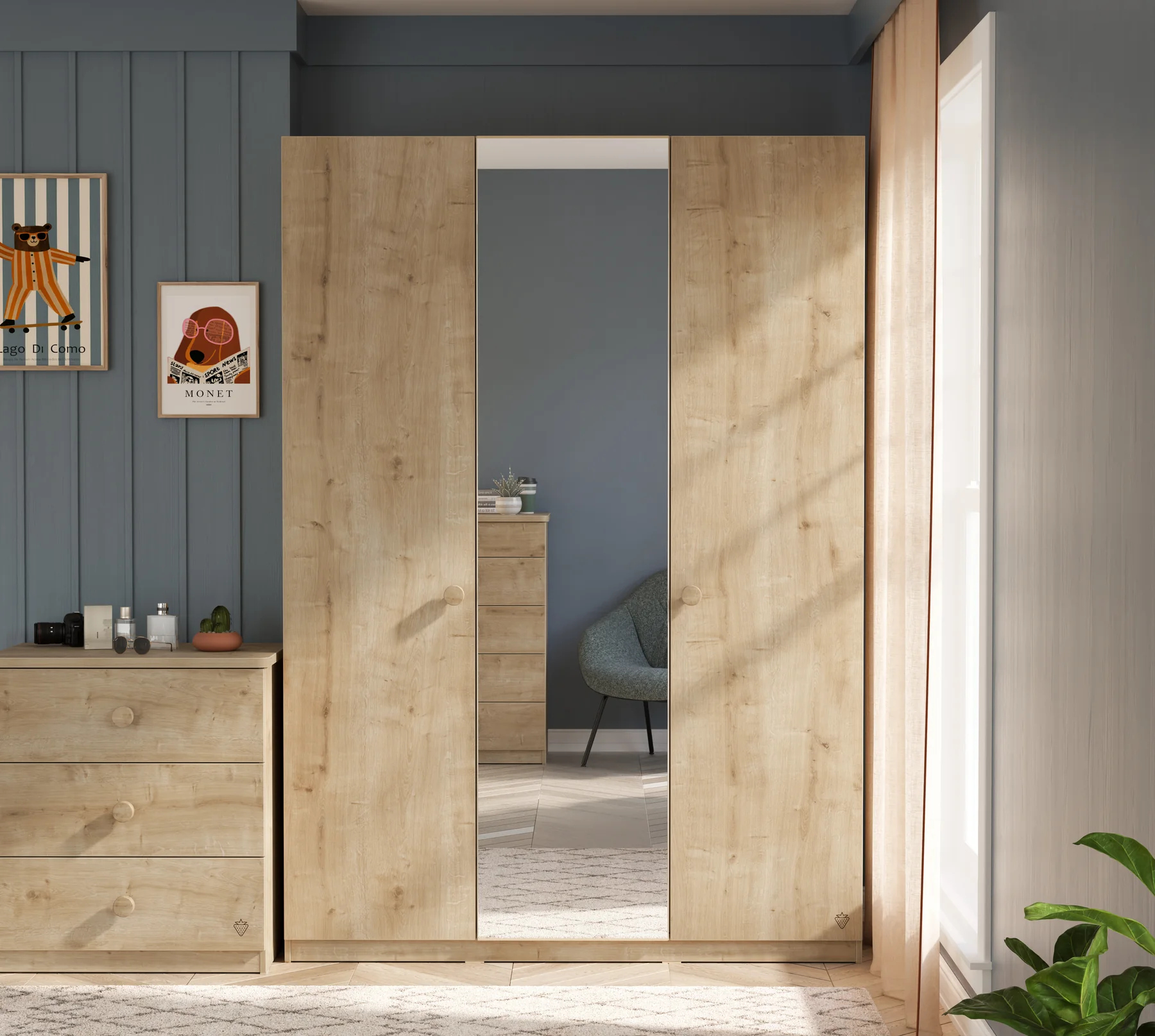 Cilek Mocha Kleiderschrank (3-türig) mit Spiegel – Natürliches Design trifft auf maximalen Stauraum