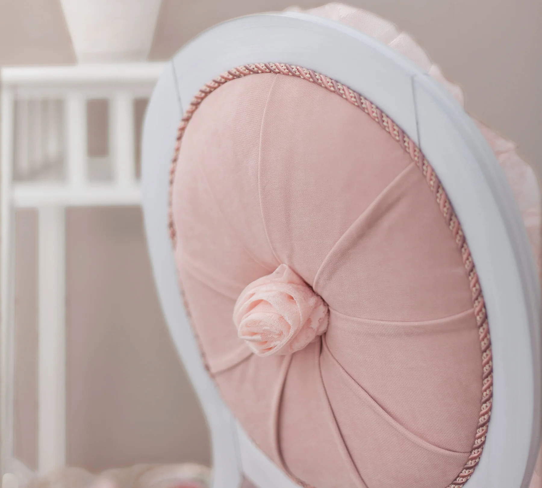 Polsterstuhl in Samtoptik mit Rüschen, puderrosa