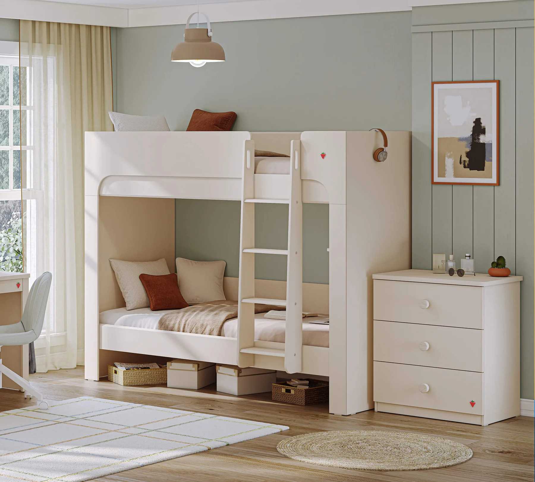 Das Etagenbett "Varia" von Cilek ist die perfekte Lösung, um den Raum in kleineren Kinder- und Jugendzimmern optimal und effizient zu nutzen. Mit seinem kompakten und modernen Design bietet das Varia-Stockbett nicht nur zwei komfortable Schlafplätze (jeweils 90 x 200 cm), sondern schafft auch eine aufgeräumte und stilvolle Wohnatmosphäre. Sicherheit hat Priorität: Die solide und robuste Bauweise macht das Varia zu einer vertrauenswürdigen Wahl für Familien. Hohe seitliche Absturzsicherungen, stabile Trittstufen der Leiter und sorgfältig abgerundete Kanten gewährleisten eine sichere Nutzung für Ihre Kinder und Jugendlichen.