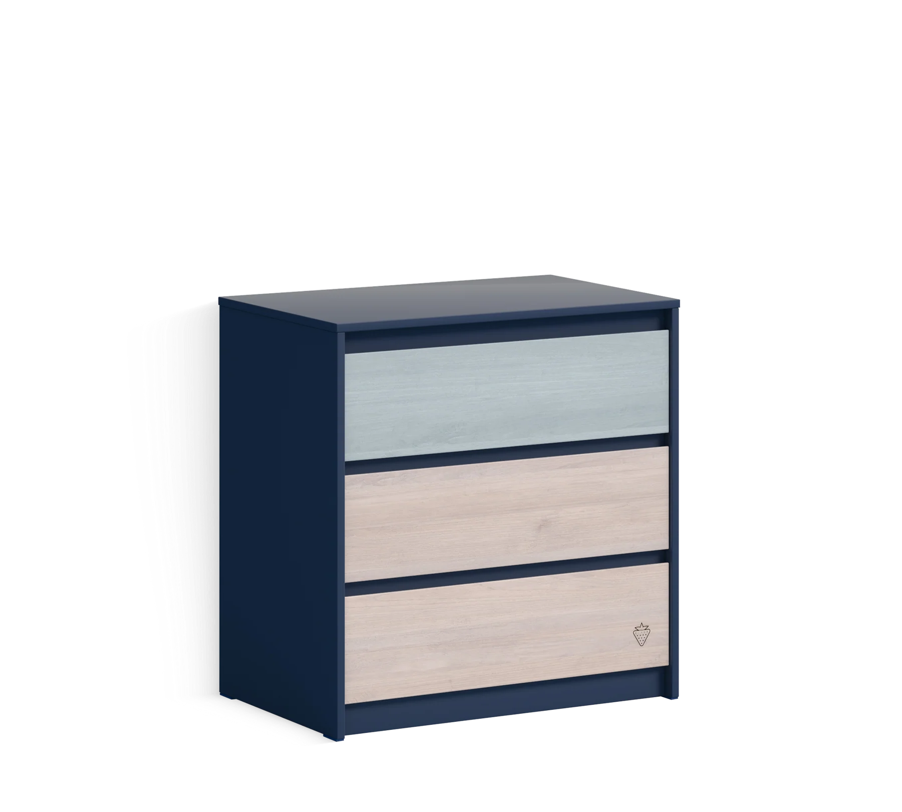 Kommode in Blautöne / Holzfarben mit 3 Schubkästen
