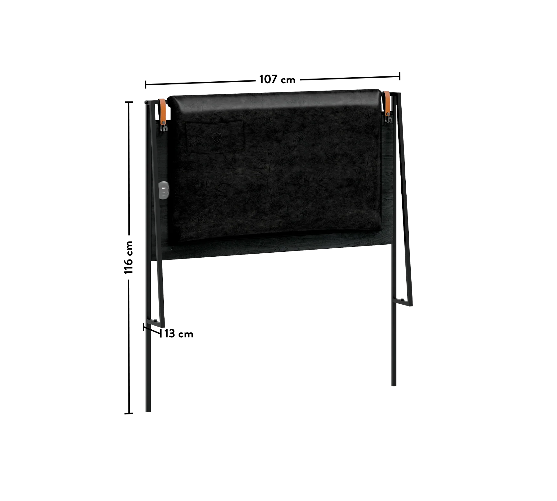 Gepolstertes Kopfteil aus Kunstleder mit Ziernähten und integrierten Taschen