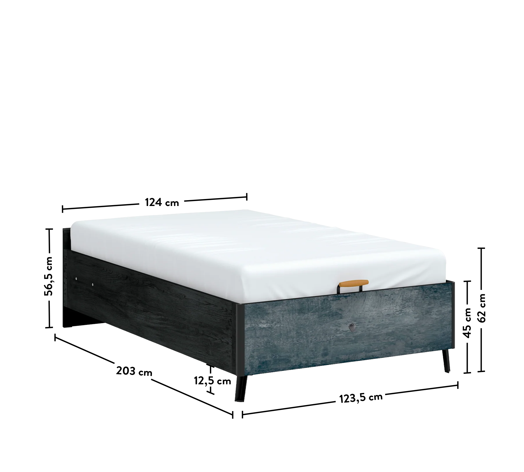 B/H/T Bett - ca. 125 x 57 x 207 cm