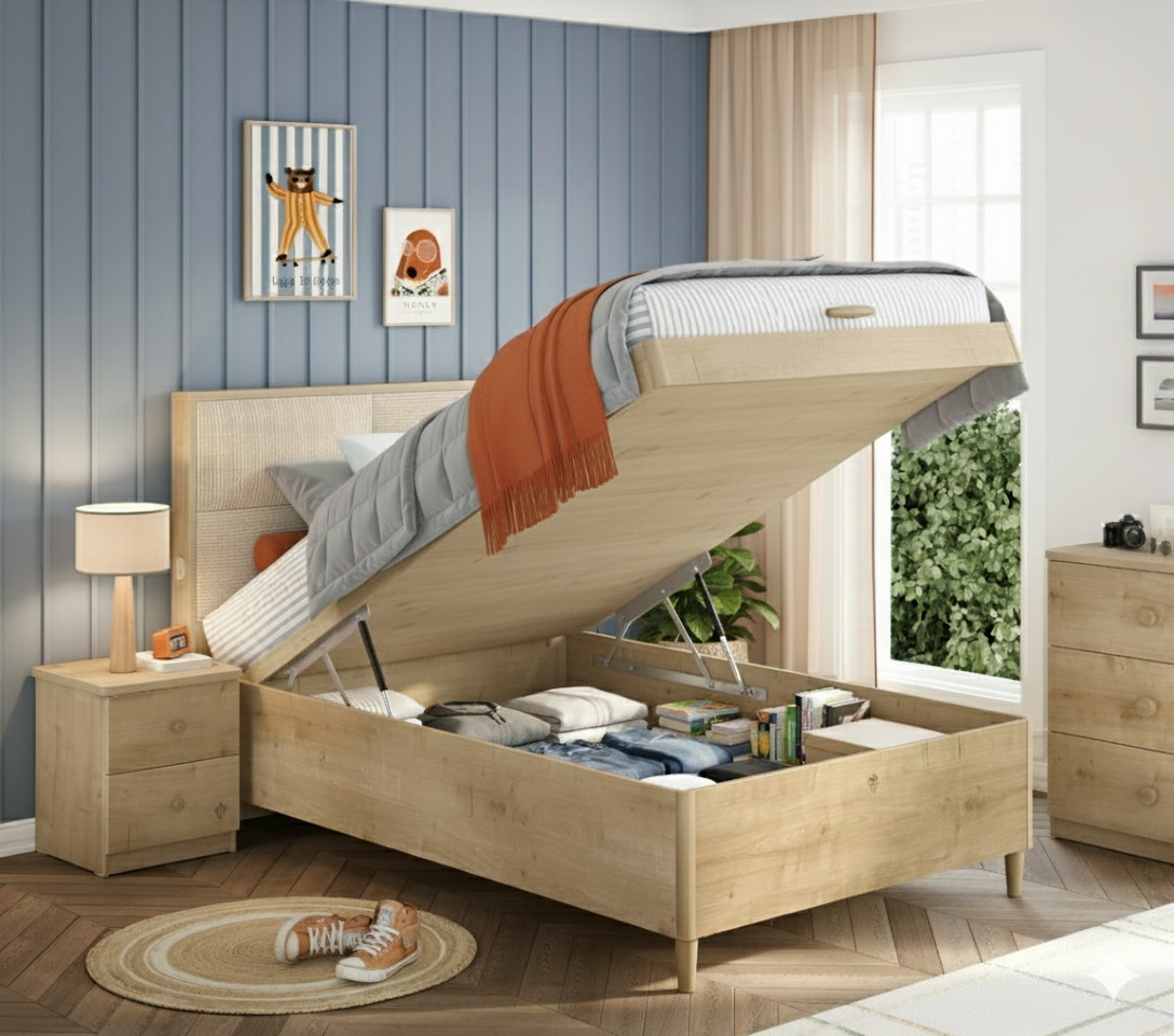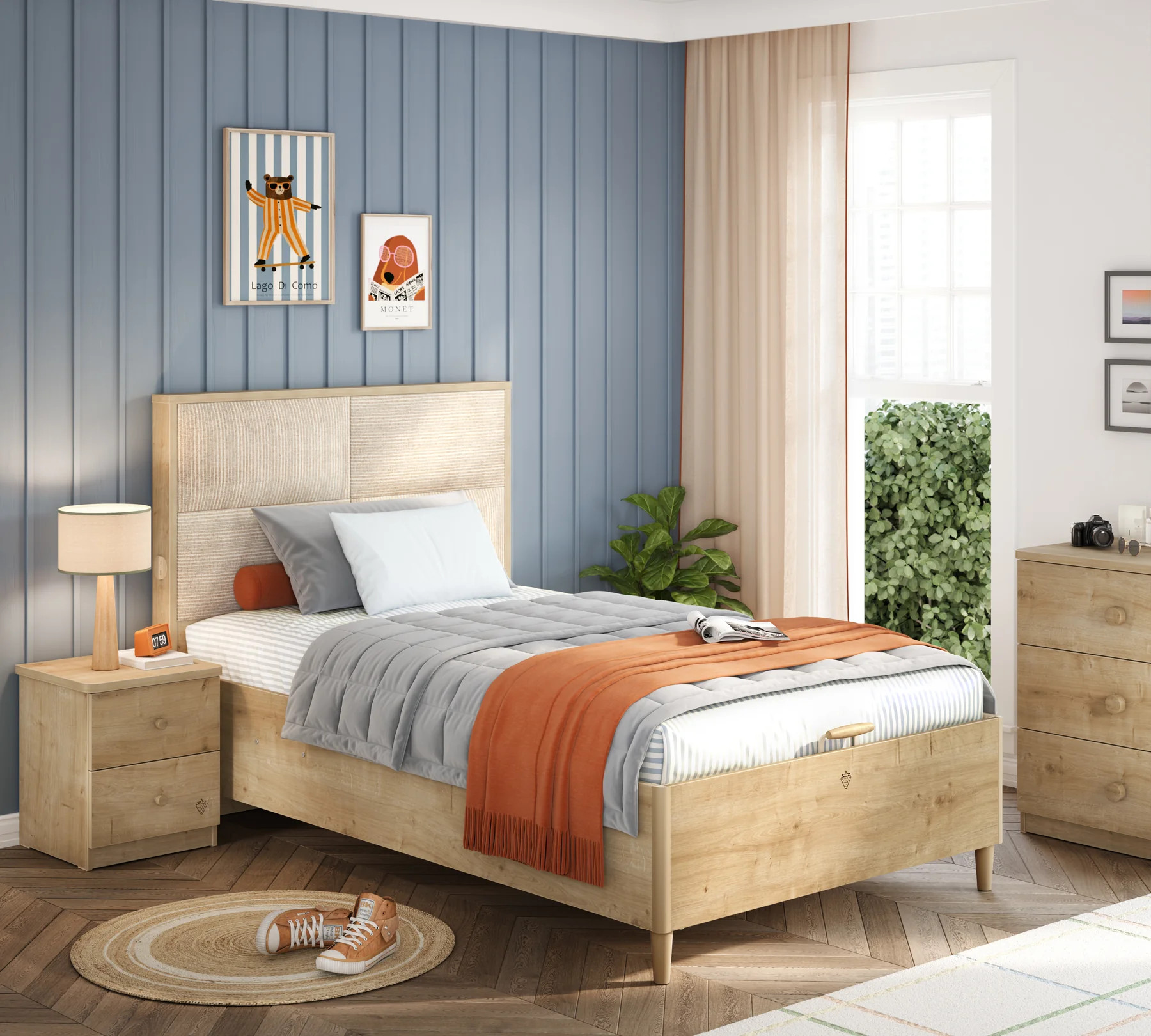 Das Cilek Mocha Stauraumbett ist die perfekte Kombination aus modernem Design, gemütlichem Komfort und intelligentem Platzmanagement. Mit seiner natürlichen Eichen-Optik und dem weich gepolsterten Kopfteil fügt es sich nahtlos in jedes Kinder- oder Jugendzimmer ein und schafft eine warme, einladende Atmosphäre.
