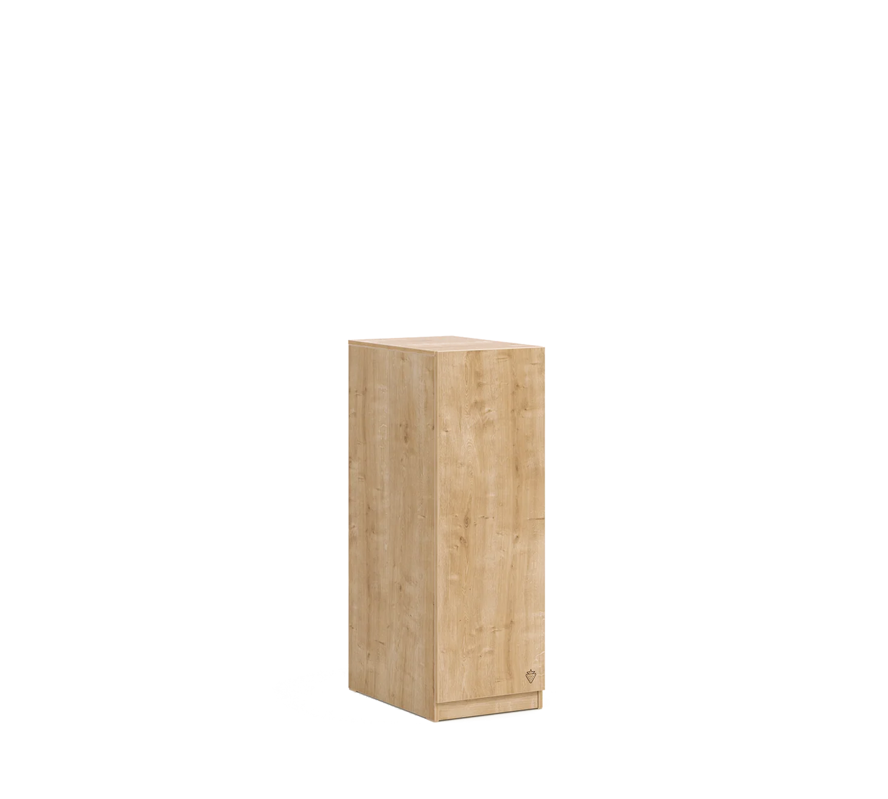 Trotz seiner kompakten Maße bietet das Mocha-Schränkchen überraschend viel Stauraum. Hinter der schlichten Tür verbergen sich praktische Regalfächer, die perfekt geeignet sind, um Spielzeug, Schulunterlagen oder Kleidung ordentlich zu verstauen. Die klare Linienführung und die hochwertigen Holzgriffe unterstreichen den zeitlosen Look.