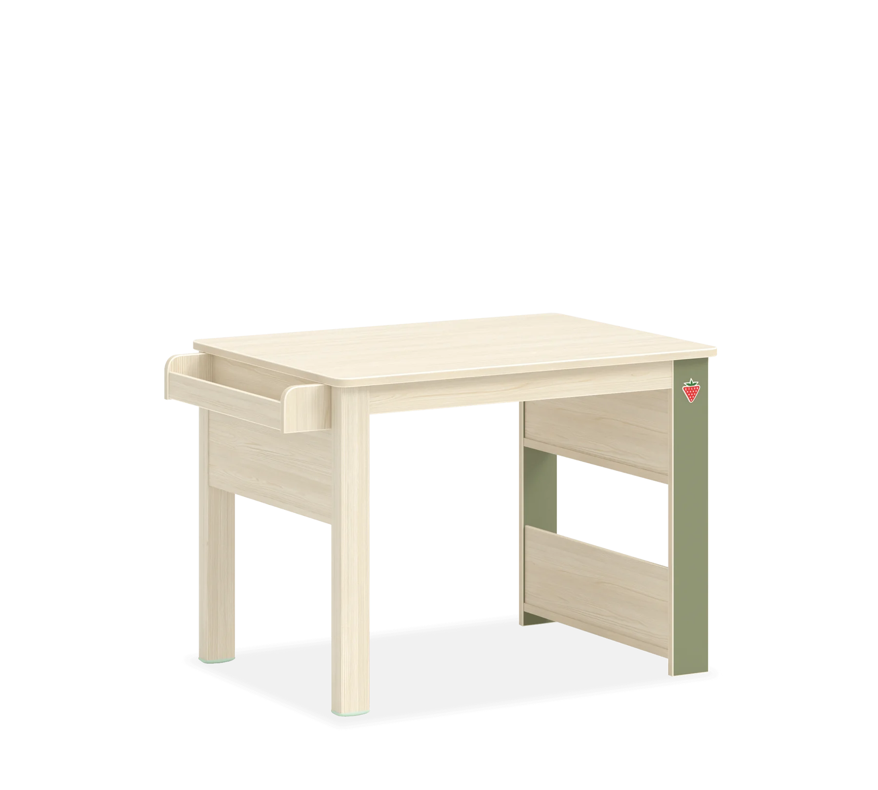 Seitlich am Schreibtisch befindet sich ein praktisches Hängefach, das als idealer Aufbewahrungsort für Schreibutensilien und Zubehör dient. Sogar Papierrollen finden hier ihren Platz. Auf der gegenüberliegenden Seite des Tisches ist ein integriertes Regal integriert, so dass die Lieblingsbücher der Kinder stets griffbereit sind. Diese bilaterale Anordnung ermöglicht eine flexible Nutzung und passt sich den Bedürfnissen der Kinder optimal an.